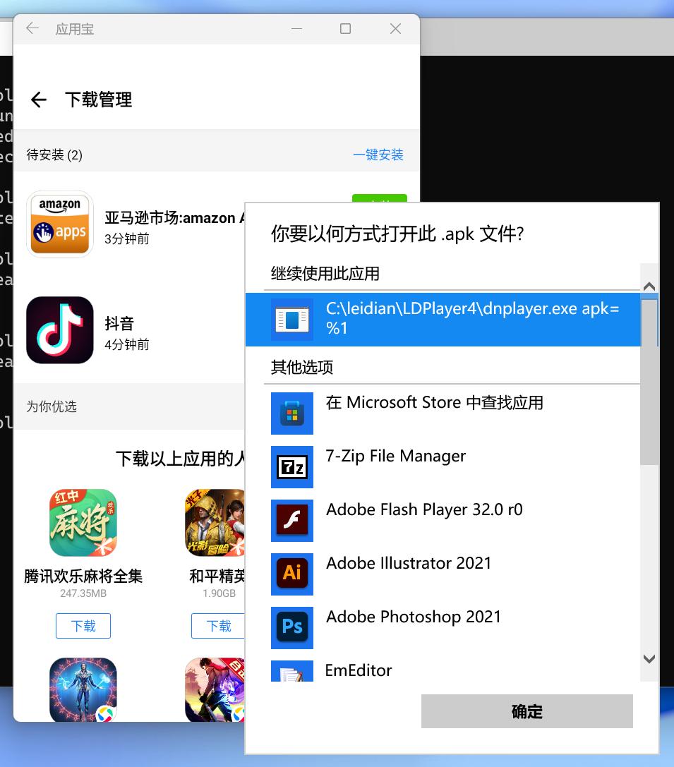 上面已经说过,WSA 的 文件关联也被 Win11 接管了 ,所以才会出现打开 APK 安装包时弹出了 Win11“打开方式”对话框的问题。这也意味着你可以将安卓应用设置为打开电脑上文件的方式;
