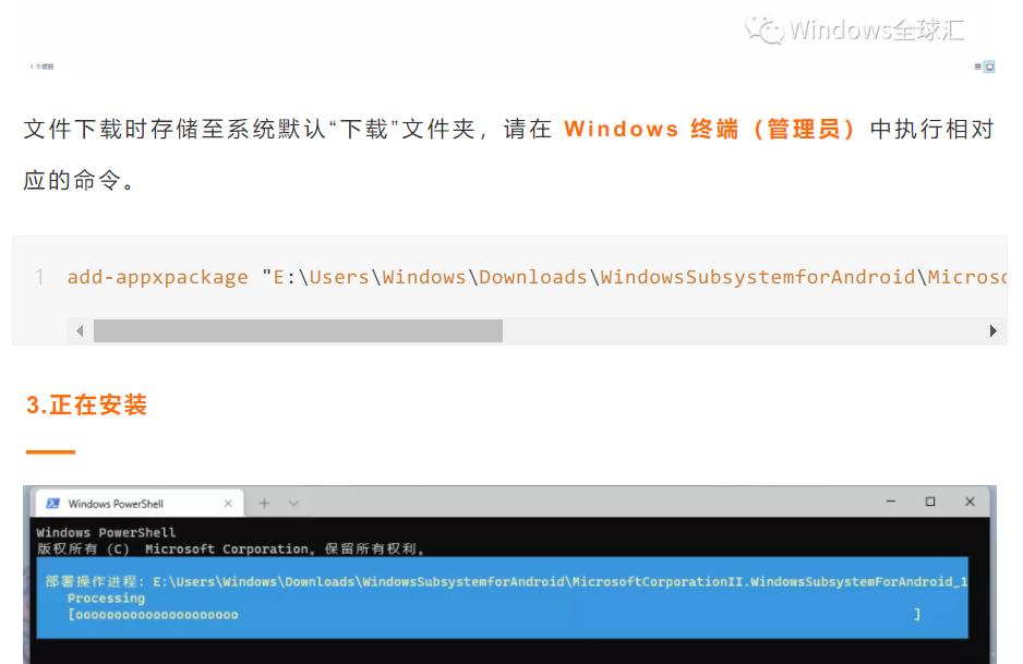 两周前,在微软中国官方微信号“微软科技”上,发布了一篇教程《 抢先体验!如何在 Windows 11 上运行 Android 应用 》。其中涉及大量的命令行以及复杂的文件名,甚至还包含一个非微软官方的 网址。