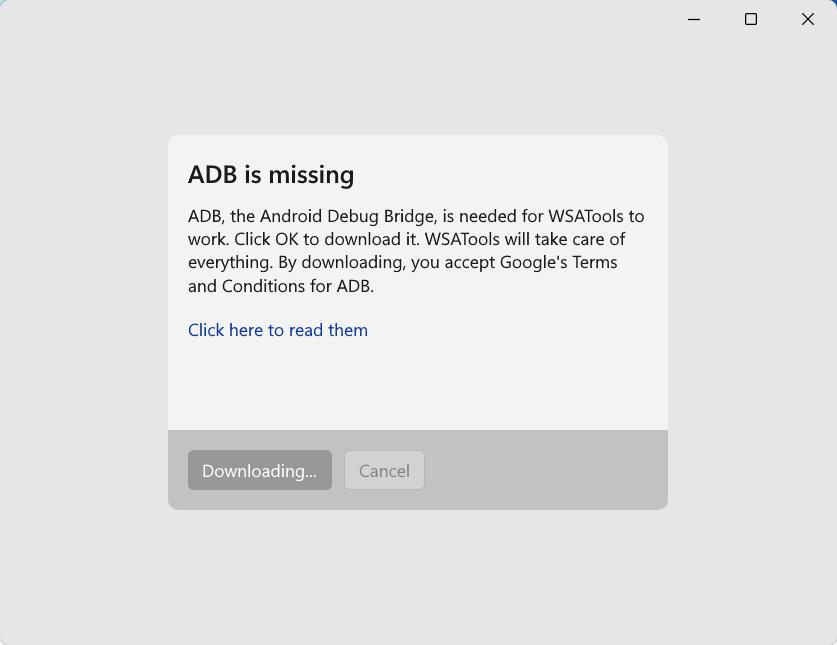 一位意大利开发者 Simone Franco 开发了图形界面工具 WSATools,它让 APK 安装变得简单:只需双击一下就可以,不需要了解和安装 ADB。如果在你的 PATH 中已经有了 ADB 包,它将直接调用。