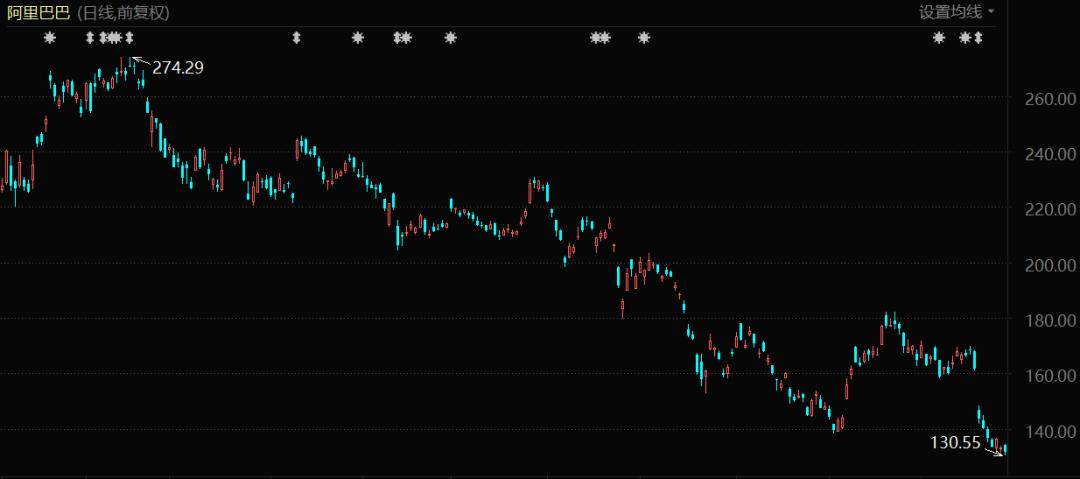 经过一整年腰斩式下跌之后,阿里巴巴股价的下跌仍在继续,于11月17日出现了跌幅11.13%的大幅单日下跌,并在随后持续下跌接近10%。