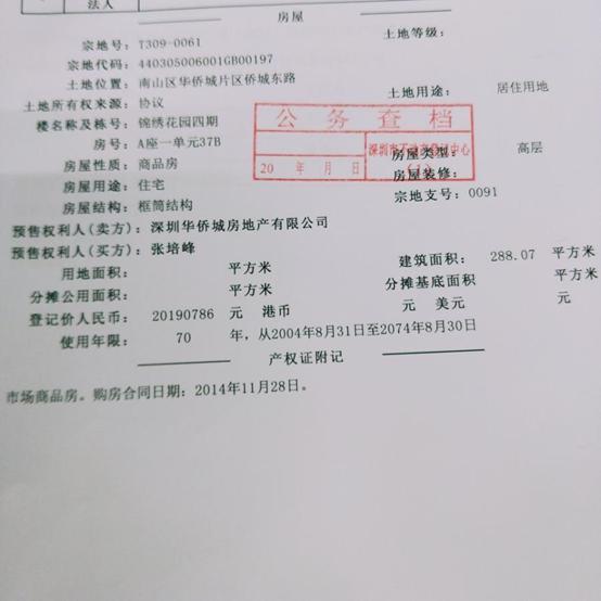 平台资料显示,被拍卖的 深圳市南山区华侨城片区侨城东路锦绣花园四期A座一单元37B房产 ,不动产证号:粤(2016)深圳市不动产权第0112816号;总建筑面积为288.07平方米。