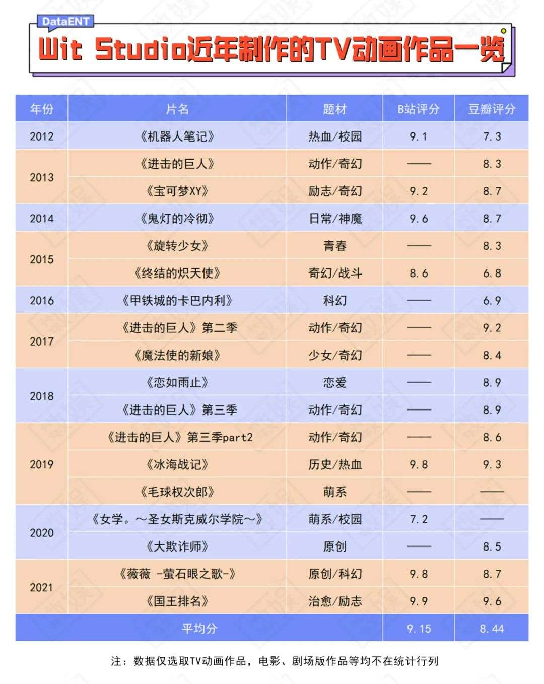 《国王排名》背后的制作公司Wit Studio本身也自带吸粉能力。