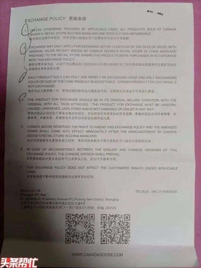 而对于此次“不得退货”的舆论风波,12月1日,加拿大鹅官方正式发布了微博声明称: