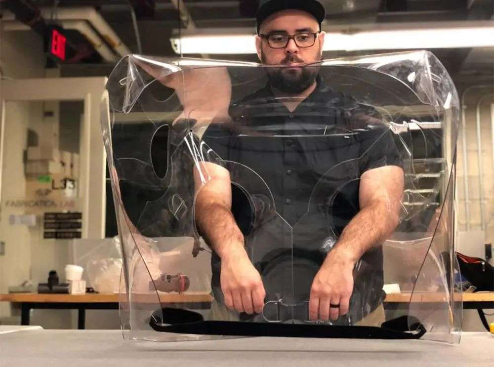疫情之下的 2020 年,还催生出另一个弹出式设计——「阿波罗 3 号」(Apollo 3)患者隔离罩,这是一种用于病床治疗的防飞沫传播的透明罩,中间开有两个圆孔,让医生可以将手伸进去给患者做治疗。