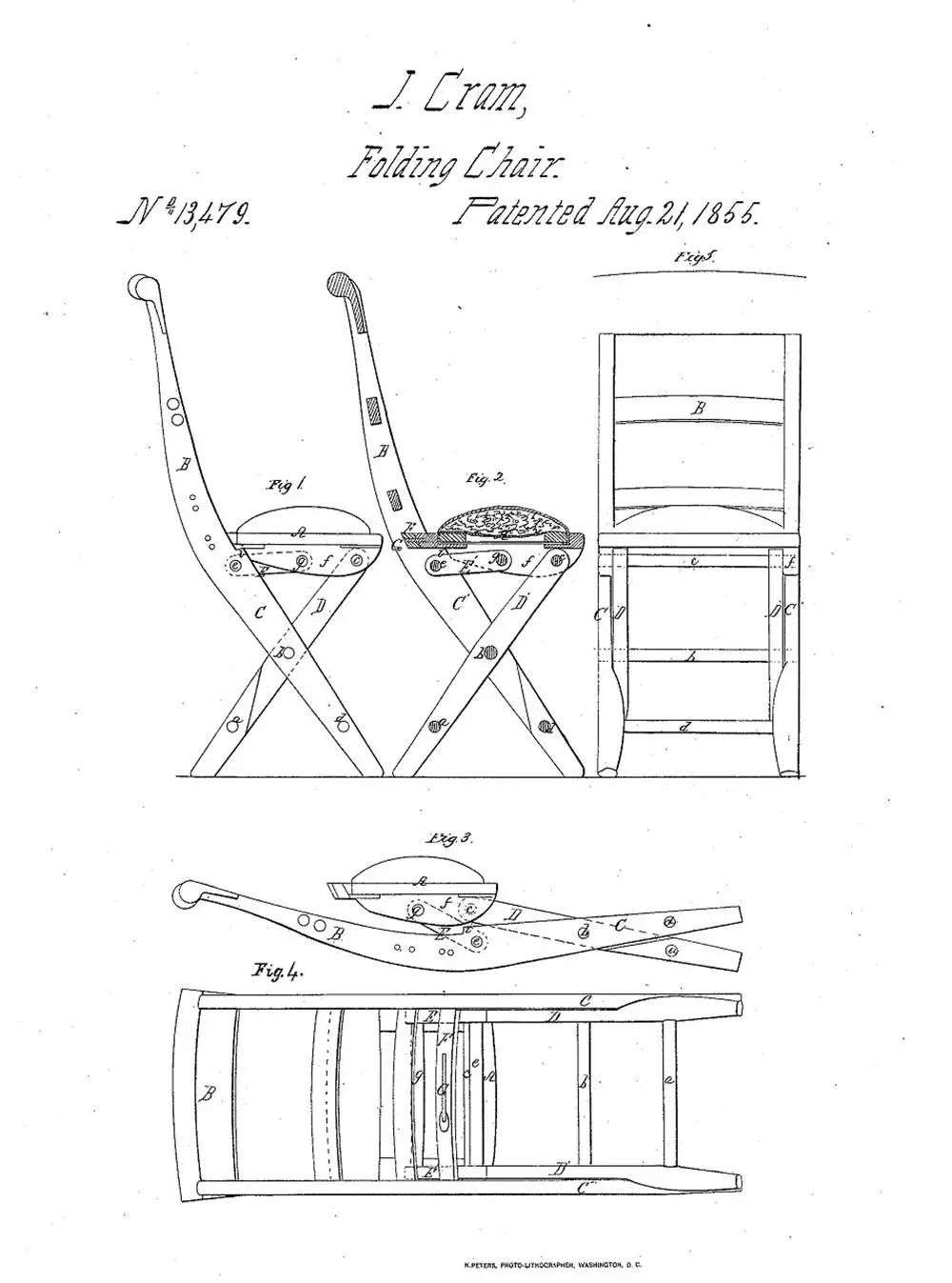 不过,真正意义上的现代折叠椅是美国发明家 John Cram 设计的,并在 1855 年申请了专利。折叠椅的重要性远不是可以折叠的家具,而是能够满足派对等临时活动的需求,而且活动结束后又可以折起来把空间腾出来。