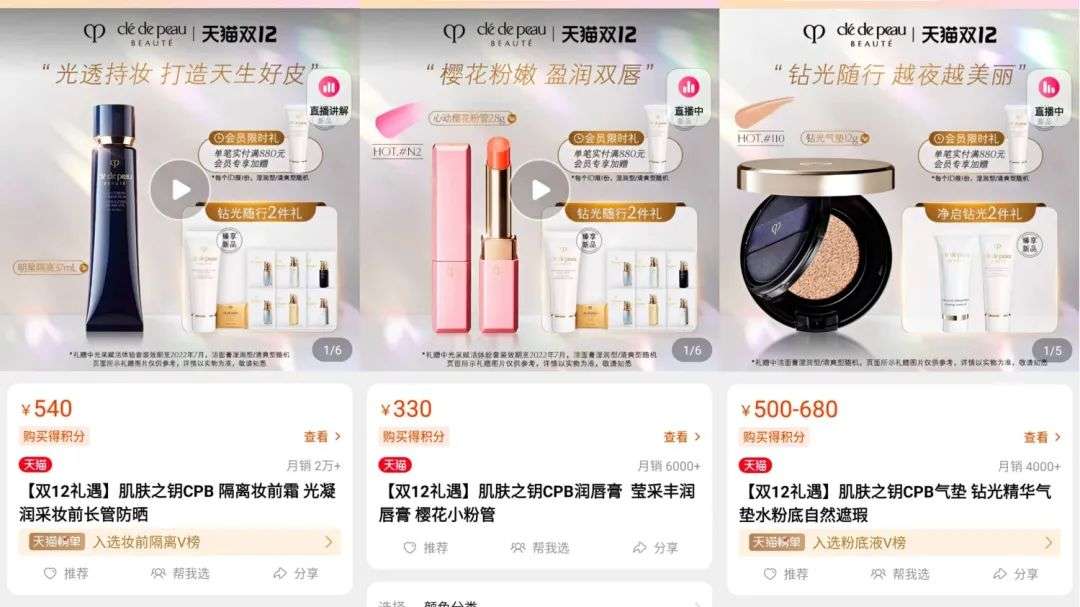 CPB隔离霜在其全线彩妆产品中,销量一骑绝尘。但同时,CPB彩妆线中的气垫、口红、遮瑕、高光、粉霜等产品却表现平平,其中热销的润唇膏和钻光精华气垫,截至发稿前,月销分别为6000+和4000+,和隔离霜在销量上的差距不小。