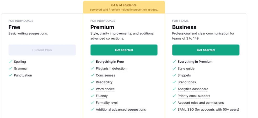 Grammarly有免费版和付费订阅版两种产品,免费版包含了基础的拼写、语法检查,付费版则包括了个人版Grammarly Premium和企业版Grammarly Business两种模式,在免费版的基础上增加写作风格建议、剽窃检测、语调建议及更高级词汇等更多选项。订阅费用也在大部分人的可承受范围内:个人用户为每月12美元,企业用户为12.5美元/月。 而Grammarly唯一的盈利方式就是来自于付费订阅。