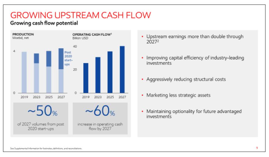 埃克森美孚计划,通过继续结构性节省成本、投资低供应成本和排放较低的产品,以及扩大投资组合中的高等级投资范围,让公司2027年的盈利和现金流较2019年水平翻倍。