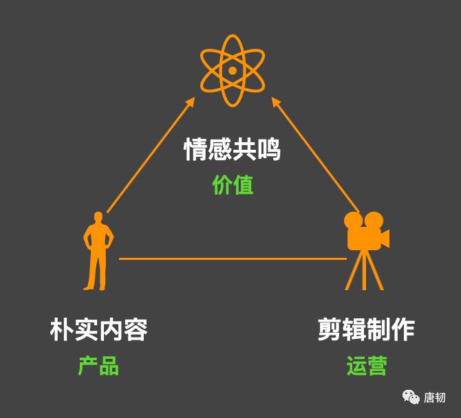 如果我们把朴实的内容比作产品,剪辑制作比作运营,那这二者共同支撑起来的就是引发情感共鸣的用户价值。