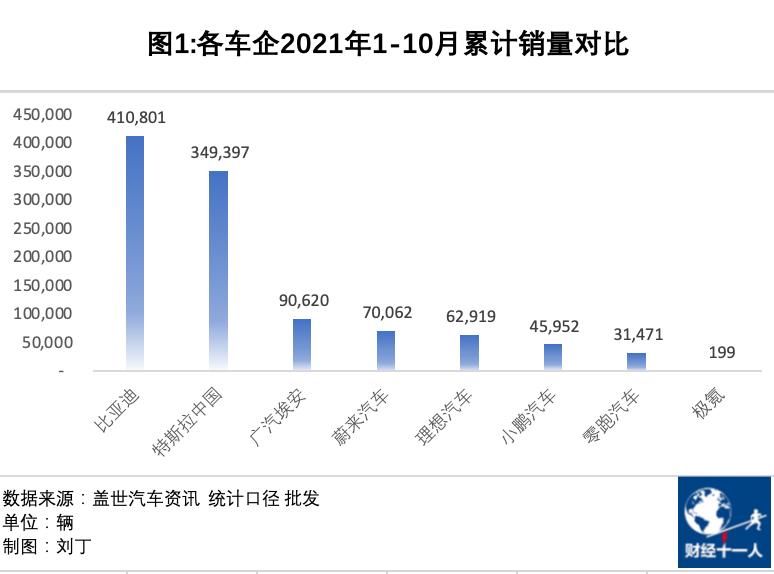 正准备上市的电动车公司主要包括埃安,极氪和零跑,把他们和上述已上市的电动车公司放在一起比较,根据2021年1-10月的累计销量排名,可将这些企业划分为ABC三档,埃安位于B档。(本文中的销量均为批发口径)