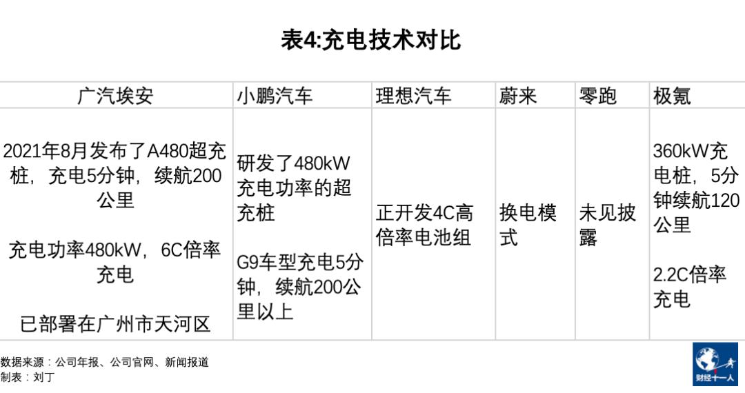 埃安于2021年8月发布了超充桩,可实现6C倍率充电,并且已经部署在广州市天河区。小鹏汽车也发布了类似产品,理想汽车正在开发4C倍率的产品,蔚来汽车是换电模式,极氪是2.2C倍率。