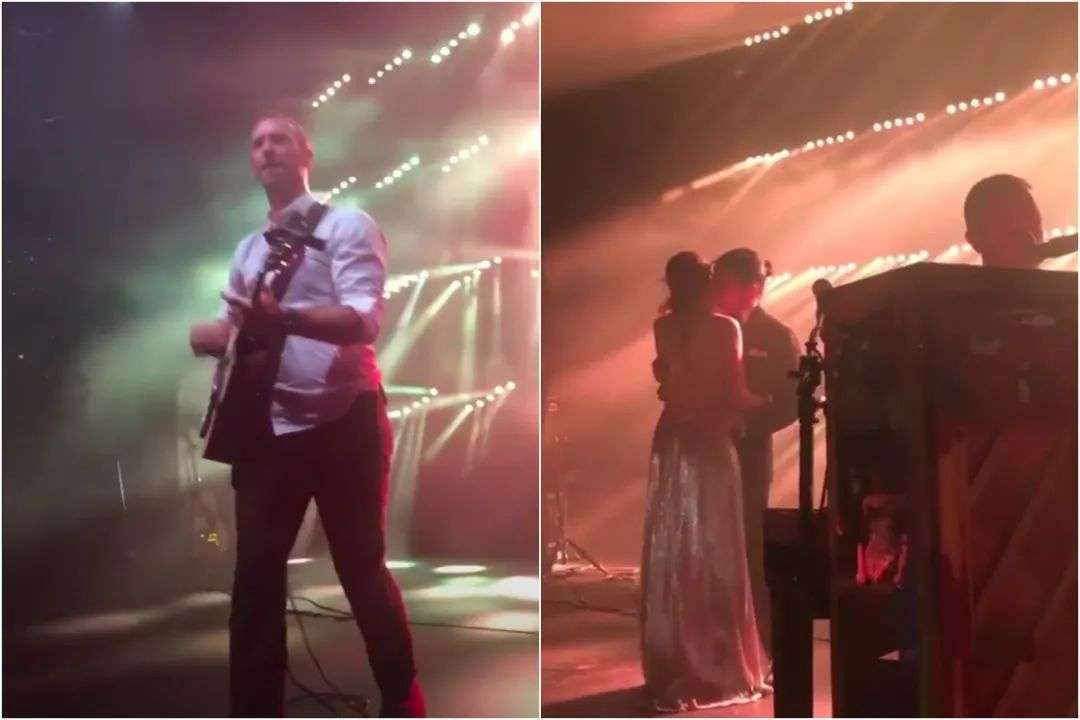 到了夜晚,乐队 Coldplay 的主唱 Chris Martin 为两位新人连唱三首歌:《Yellow》《Fix You》和《A Sky Full of Stars》,Norah Jones、Jamie Cullum 等知名歌手也登台献唱,让客人们尽兴。