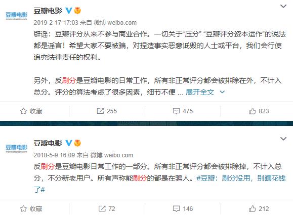 根据官方说法,豆瓣评分从来不参与商业合作。一切关于“压分” “豆瓣评分资本运作”的说法都是谣言!希望大家不要被骗,对捏造事实恶意诋毁的人士或平台,我们会行使追究法律责任的权利。