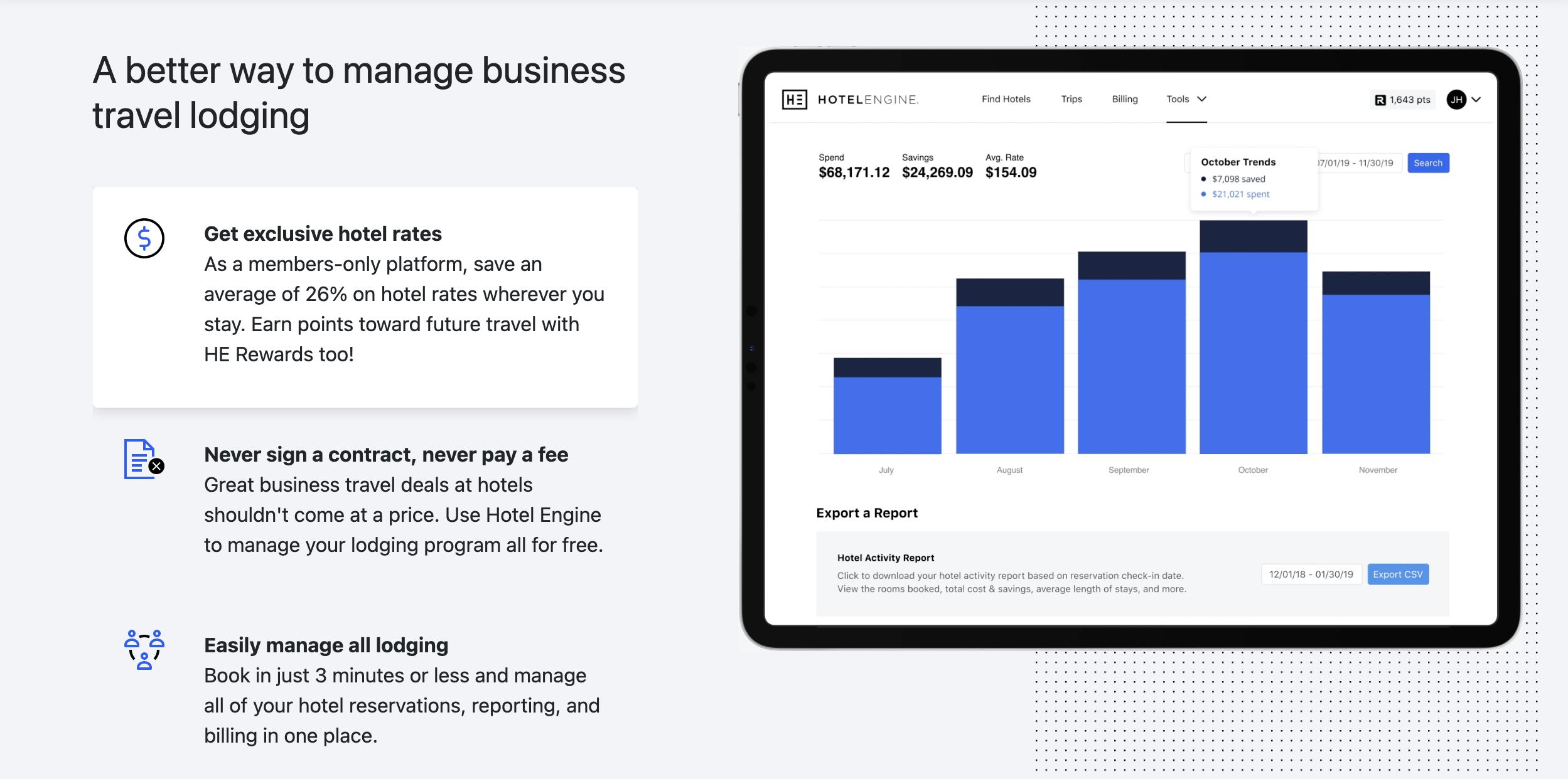 Hotel Engine将自己描述为一个“住宿表现网络”。换句话说,这家初创公司是一个只面向会员的B2B全球预订平台,旨在为企业提供更好的住宿价格,以及提供“优化其旅游项目”的工具和见解。与此同时,该公司创始人兼首席执行官Elia Wallen表示,该公司还与住宿供应商(也就是酒店)合作,使这些供应商接触更多“高价值”商务旅行者从而从中获益。