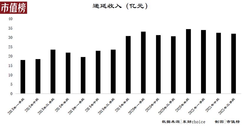 递延收入,是指从用户处提前收取的,未来可以转为收入的资金,这一科目的大小,一定程度上可以反映营业收入的增长情况。