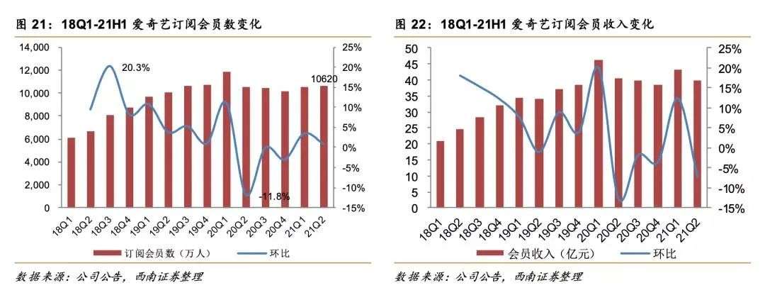 整体数据来看,2020年的递延收入规模明显高于2019年。进入2021年,以三季度末为例,递延收入增幅还不足5%,说明后续爱奇艺的收入增长乏力。