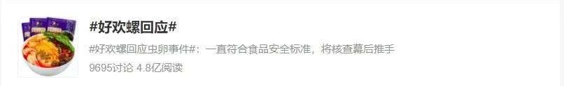 目前,微博话题#好欢螺 虫卵#已达到3.2亿次阅读,#好欢螺回应#达到4.8亿次阅读。