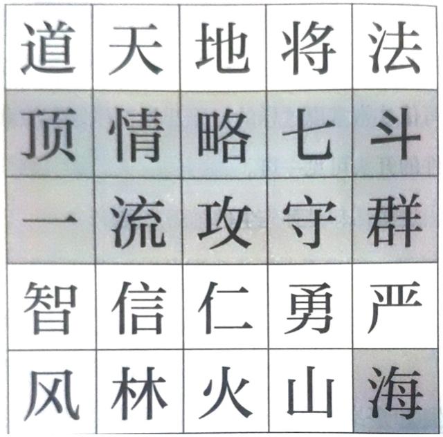 第1行的“道天地将法” 表示在战斗中取胜的条件,“道”即理念。