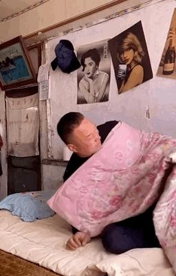 从张同学的作品中也可以看到,他的视频中有很多充满年代感的元素。比如贴在墙上的美女画报、DVD碟片和放映机、洗脸的搪瓷盆、娃哈哈和爽歪歪、小当家干脆面、以及一些老旧到掉漆的家具……这些元素的存在,让他的视频游离于虚与实之间。有人质疑这并不是现代真实的乡村生活,有人却力证有些乡村就是这个样子。