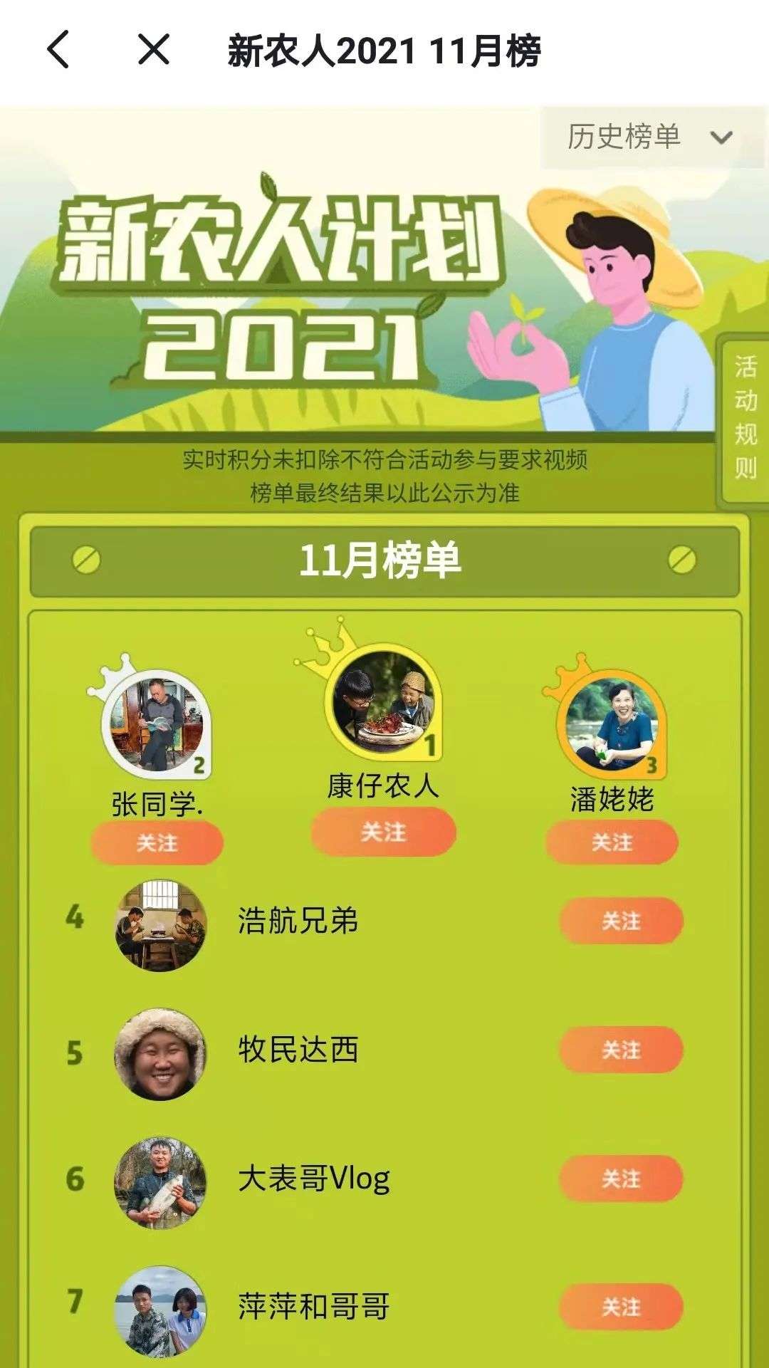 今年4月,抖音推出“新农人计划2021”,不仅拿出2亿流量资源,还从运营推广、短视频制作、优质内容要素、直播带货等方面扶持乡村内容创作者。而张同学更新的第一条视频是在今年10月,他的作品也经常会带上#新农人计划2021的话题,截至目前,该话题累计播放量已经超过712亿。
