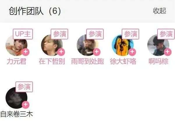 这六位 UP 主分别为啊吗粽、力元君、老坛胡说、福乐小哥、徐大虾咯、在下哲别。他们中的大部分曾入选年度百大 UP 主,粉丝都是百万级别,横跨生活区、游戏区、美食区等等。