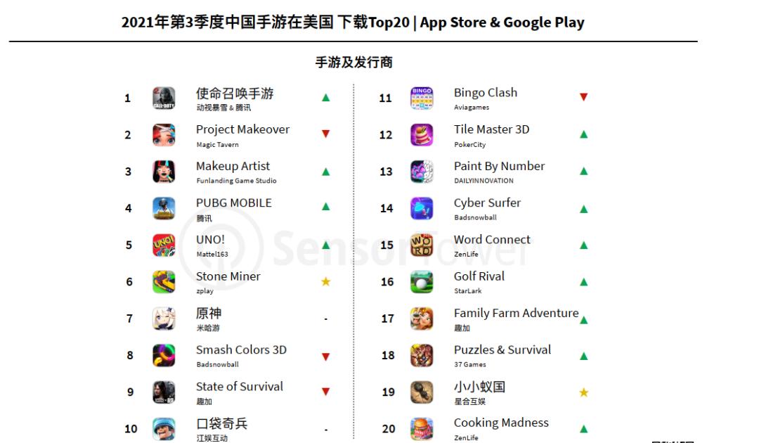 6、《2021年第3季度美国移动游戏市场概览》,来源:Sensor Tower