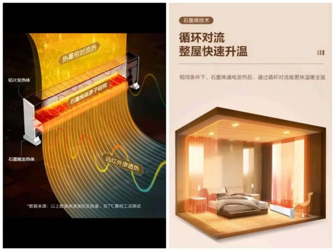 纵观电商平台上的各类取暖产品,相比传统的油汀、电热毯等取暖器,有多款号称在取暖材料、控温技术等方面全新升级的智能产品,主打石墨烯导热材料升级、智能调节控温节电,以及全屋智能智能家居生态的接入等。