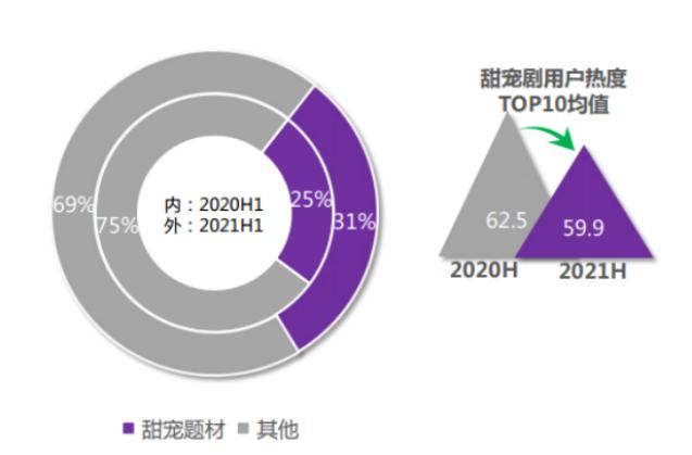 (2020-2021上半年上线甜宠剧数量占比,来源:艺恩数据)