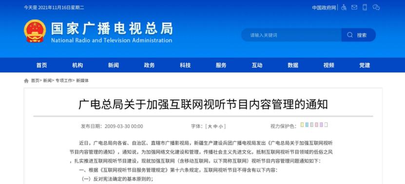 2014年3月广电总局在官网发布《关于进一步完善网络剧、微电影等网络视听节目管理的补充通知》,要求互联网视听节目服务单位需要实行“先审后播”的管理制度为内容把关。同年9月,发布《关于进一步落实网上境外影视剧管理有关规定的通知》,重申海外剧引进规范和内容审核流程。