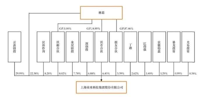 2019年,商米变更设立为股份有限公司,经过10轮增资和6次股权转让之后,确定了13个股东。截至本招股说明书签署日,林喆合计控制公司40.24%股份,蚂蚁持股比例29.99%、美团持股比例为 8.20%、小米持股比例7.78%。