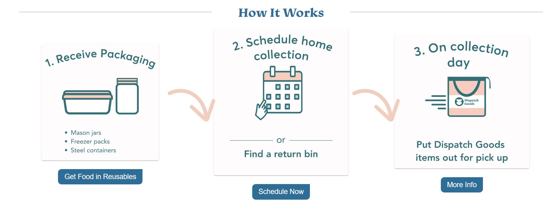 美国人平均每年使用和扔掉110磅的一次性塑料,但仅仅只有8%的塑料被回收处理。而 Lindsey Hoell 也是在意识到海洋塑料危机后,在2019年创立了「Dispatch Goods」,旨在建立一个承担回收塑料容器、冷冻包装及包装等事务的基础设施,在对回收物品进行清洗、消毒后供重复使用。客户可以在家中安排「Dispatch Goods」上门取货或将回收物品直接存放在回收箱中。