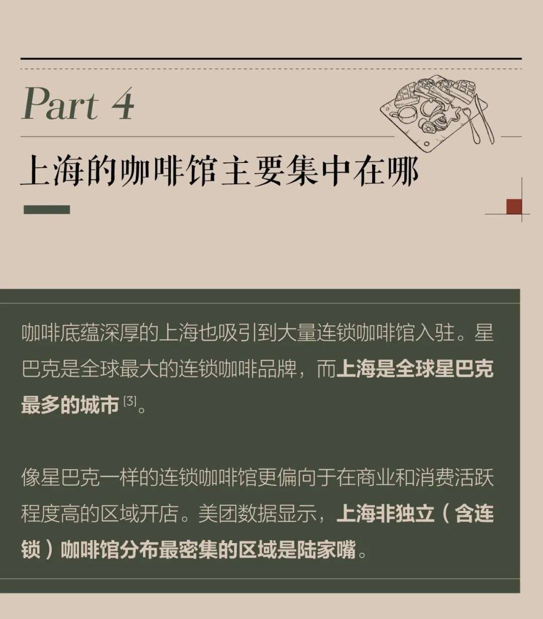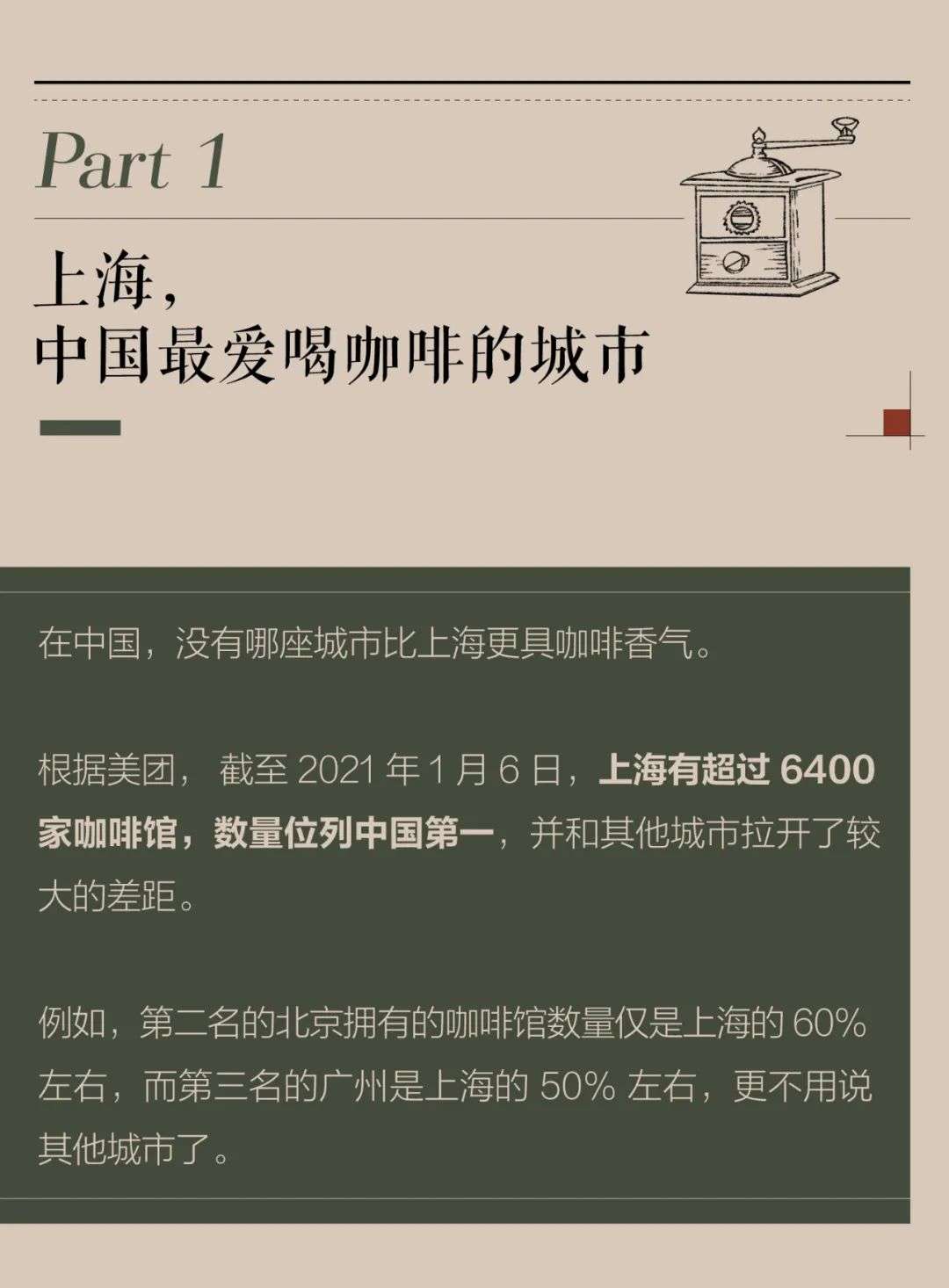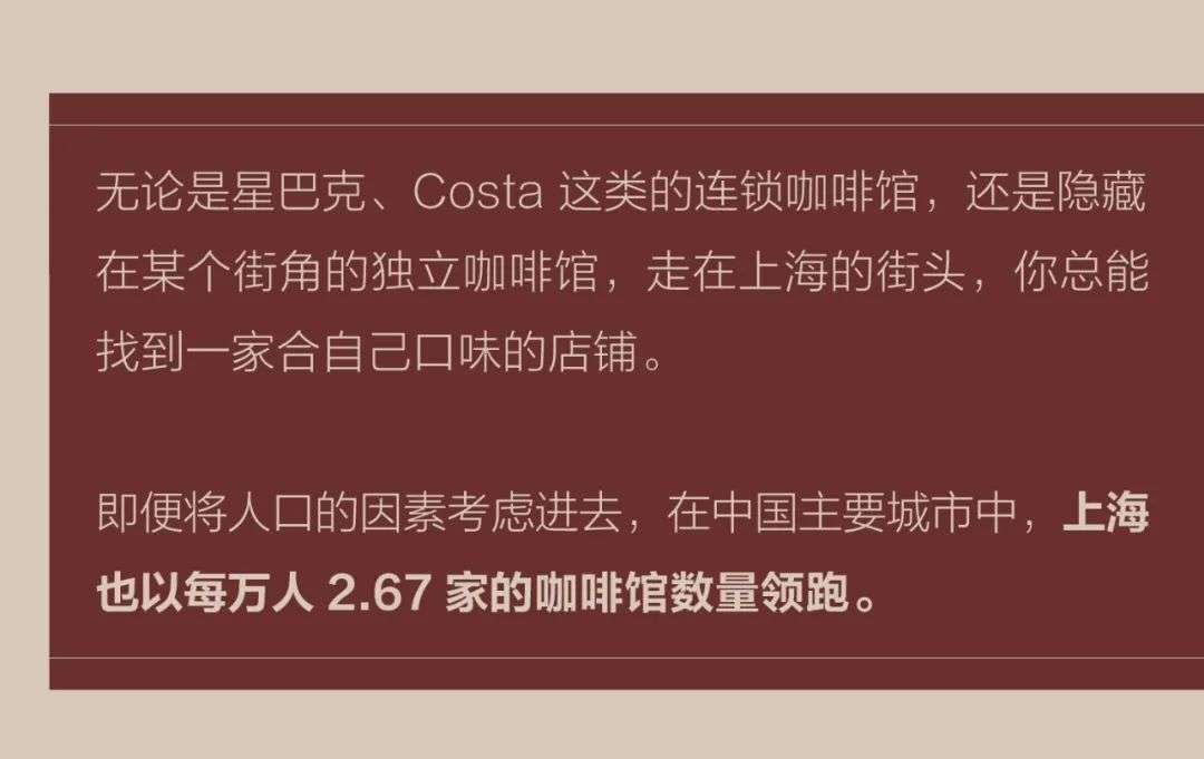 1、上海是全中国拥有最多咖啡馆的城市,每万人咖啡馆数量也最多。