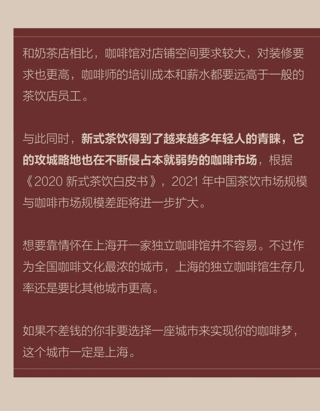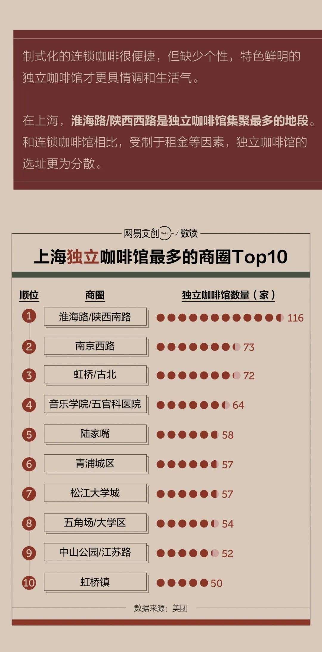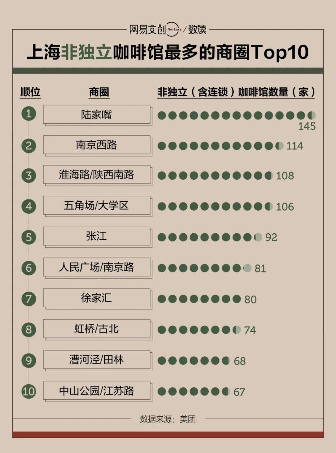 1、上海是全中国拥有最多咖啡馆的城市,每万人咖啡馆数量也最多。