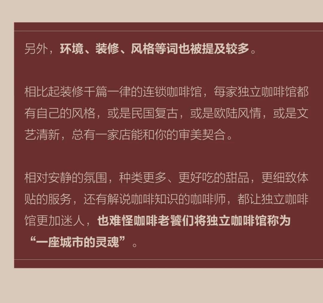 5、独特的口感和环境、风格,是大家想去独立咖啡馆消费的重要原因。