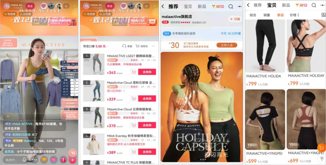 例如,近两年发展势头很猛的国产运动品牌 Maia Active 的直播间,更多是在销售「性价比较高、相对畅销」的产品;而天猫旗舰店还负责推当季高价新品;线下则适合用户购买贴身内衣等体验型产品。
