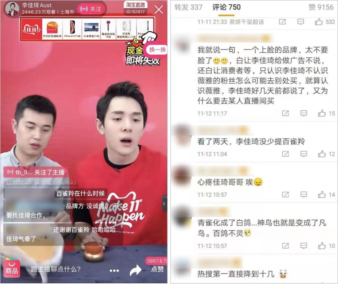 事后百雀羚被骂上热搜,被网友指控「享受了李佳琦的提前宣传,却又失信于人」。