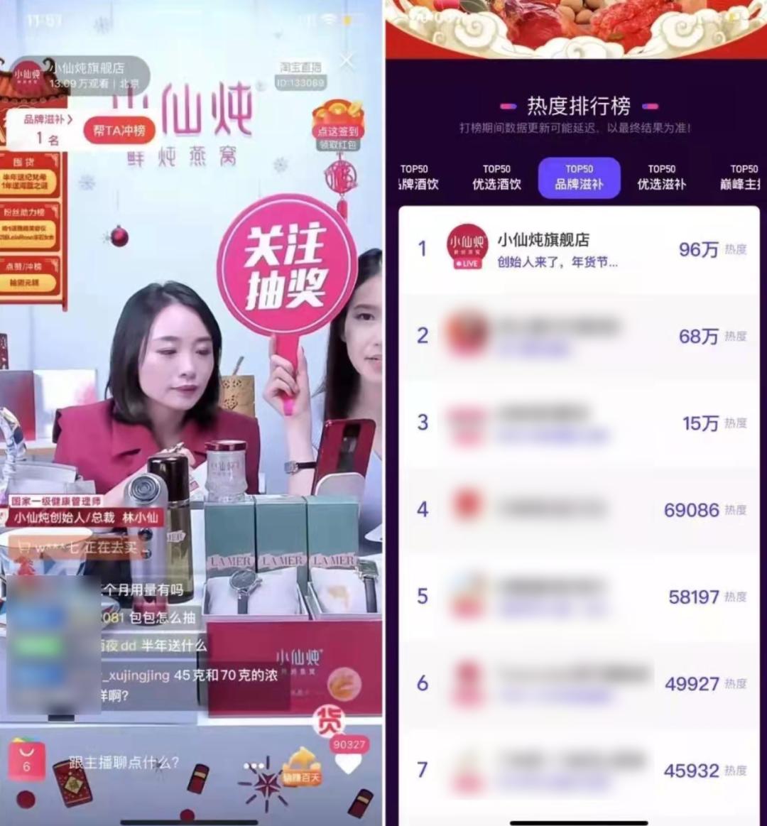 此前,小仙炖高级总监@郑悠扬 在接受采访时提到,它们的「自播业务」并不完全以销售为导向,而是通过直播这个公域入口,连接「弱关系粉丝」。