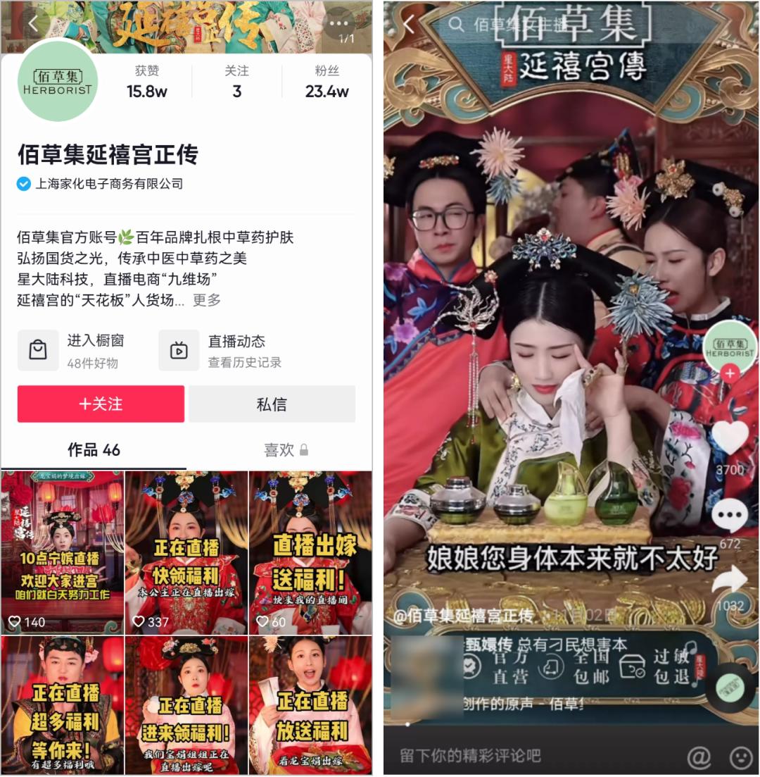 比如,双十一期间,佰草集借助大火的热播剧《延禧攻略》,别出心裁地打造了“宫廷风格”品牌自播。