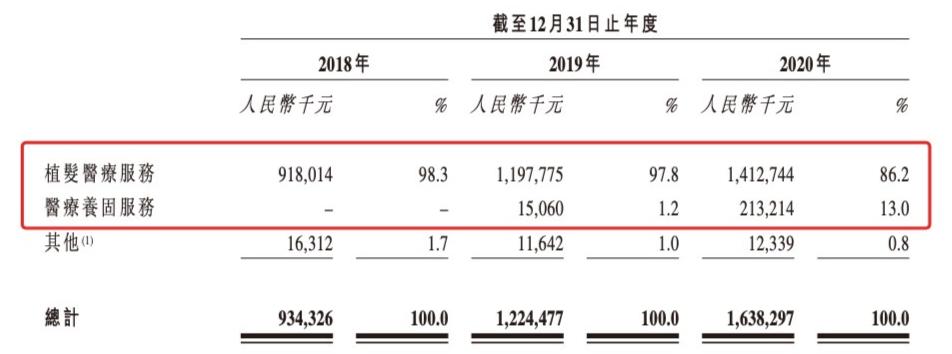 按照收入结构来看,雍禾医疗的主要收入来源是提供植发医疗服务,雍禾瞄准着“秃头”的程序员和金融民工等人,虽然做到了全国第一,营收也达到了20亿,但放在整个医疗市场而言,仍不是巨头。