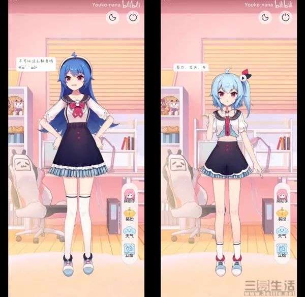 几乎是在同时,哔哩哔哩(下文简称为B站)也开始小范围内测其虚拟人物功能。据悉,其将标志性的虚拟人物“看板娘”22和33放到了用户个人主页的背景中,用户可以自由在这两个人物中进行选择,并能对其进行装扮、修改背景等。并且值得注意的是,在目前的测试阶段,“看板娘”也能与用户进行的简单互动,例如问候、撒娇、播报天气等。