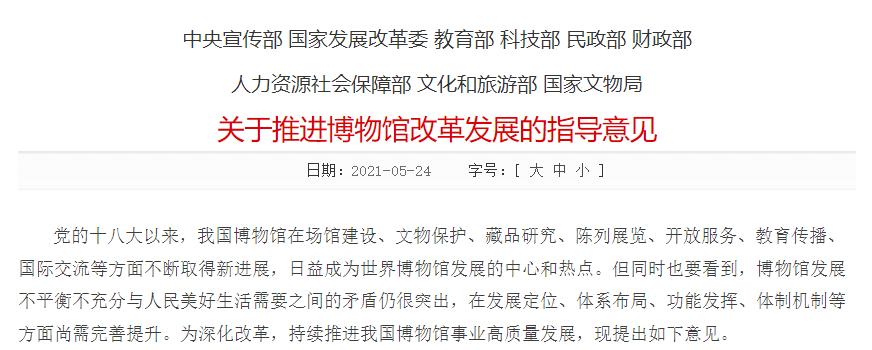 此外,据国家文物局副局长关强在《关于推进博物馆改革发展的指导意见》的发布会上表示,在疫情限流措施下,全国博物馆在2020年举办了2.9万多个展览,接待5.4亿人次观众。《意见》提出,到2035年,中国特色博物馆制度将更加成熟定型,博物馆社会功能更加完善,基本建成世界博物馆强国。