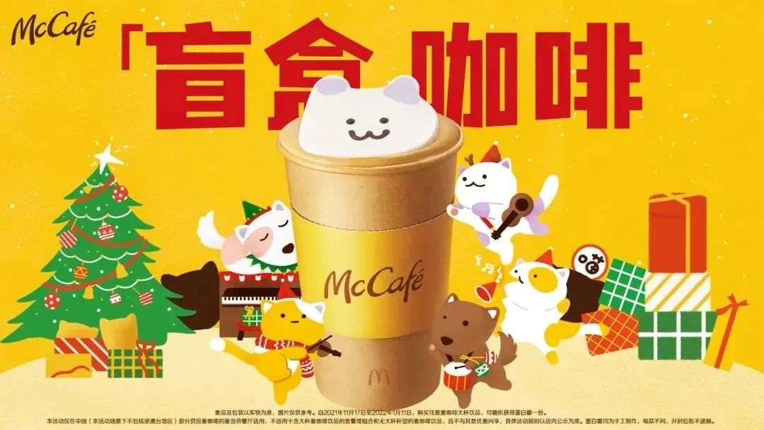 再到最近,麦当劳旗下的麦咖啡推出了只送不卖的「萌宠盲盒」蛋白霜,购买任意麦咖啡大杯饮品即可随机获得,全国限量 200 万份。