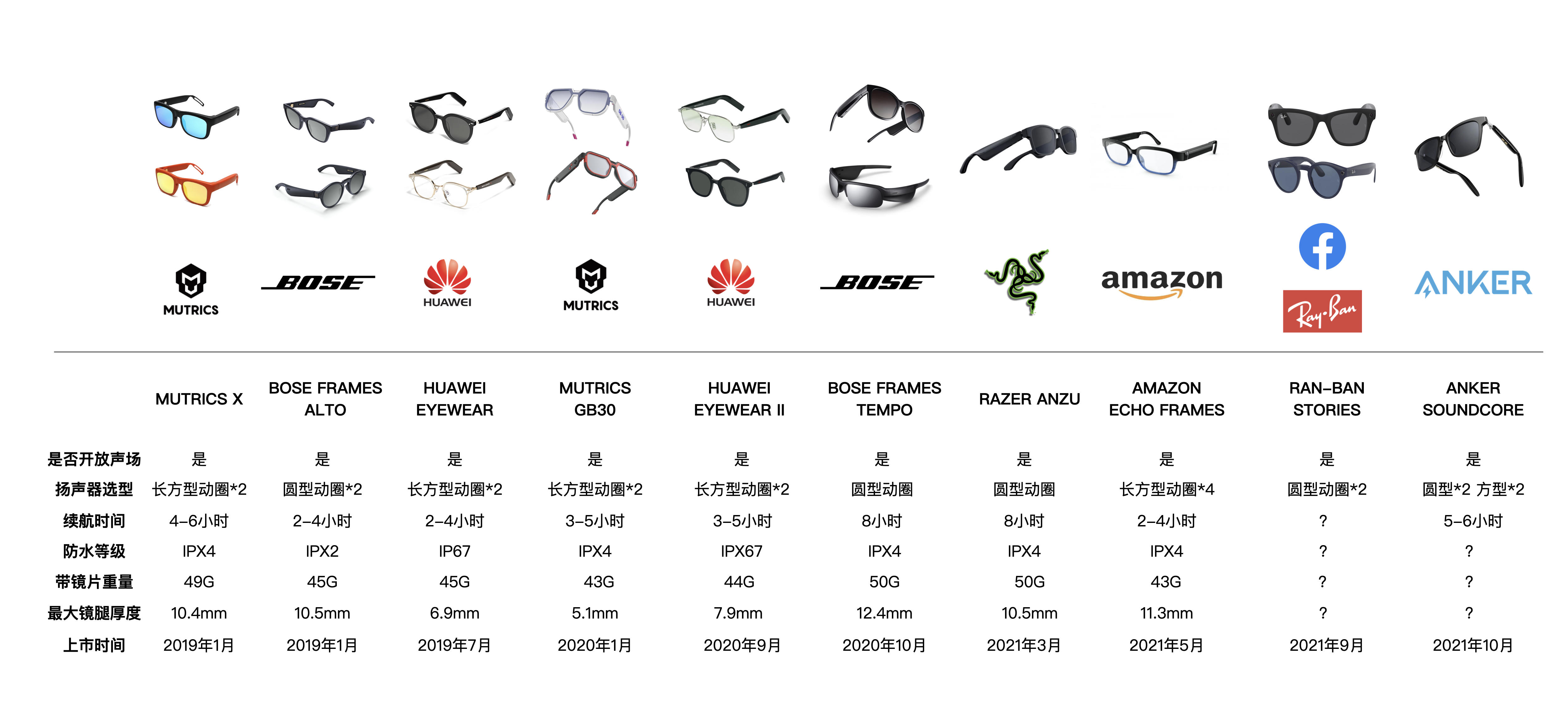 目前行业多款智能音频眼镜品牌对比