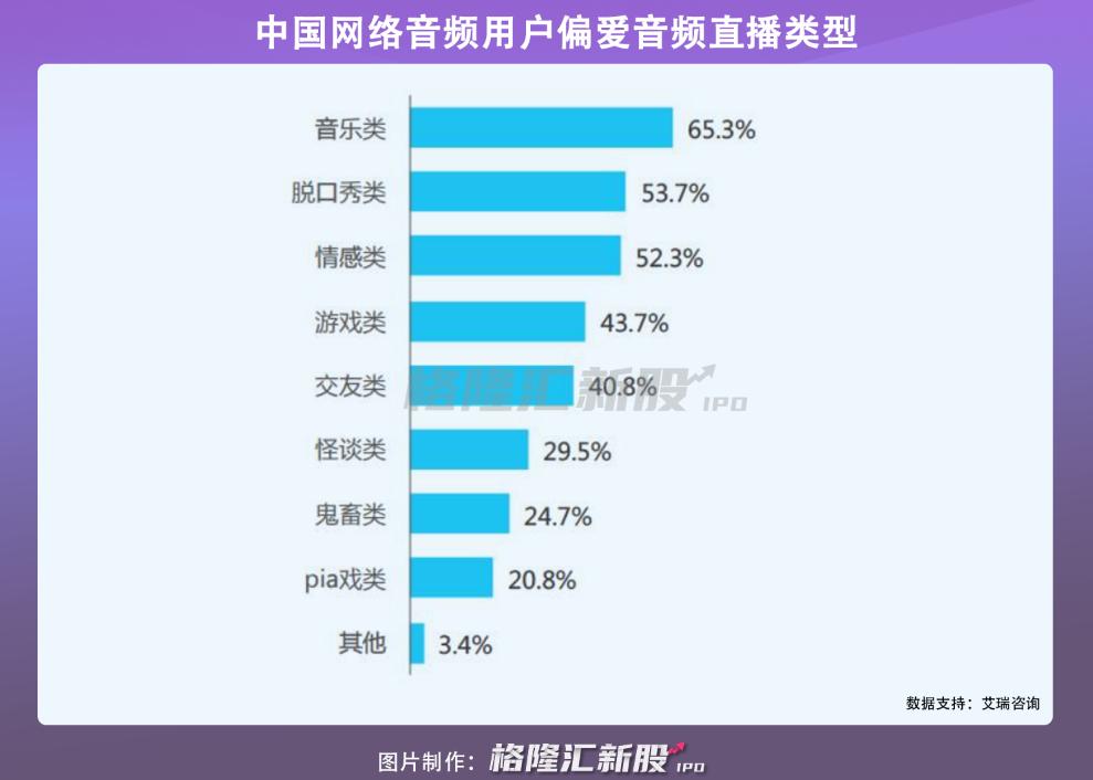 细分来看,历史、相声小品、脱口秀是用户偏爱的音频节目类型,音乐、脱口秀、情感是用户偏爱的音频直播类型。