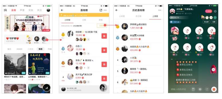 充值打赏则是平台收入中重要的新增长点,音频直播能支持主播和听众之间进行实时的交流互动,用户打赏的商业模式应运而生,不但提高了平台和主播的收入水平,还促生直播业务的新鲜玩法,如付费连麦、付费问答等。