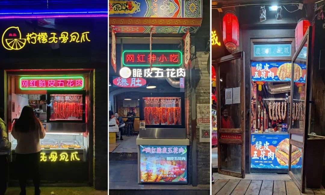 最近,脆皮五花肉又火了。速度之快,让内参君一时找不到发起地。北京、上海、广州、南京、武汉等多个城市的大众点评页面,都一齐挂上多家脆皮五花肉的“新店”招牌。而实际的新店数量,远不止此。仅在北京烟袋斜街一条小吃街上,就有三家未被收录的卖脆皮五花肉的店。