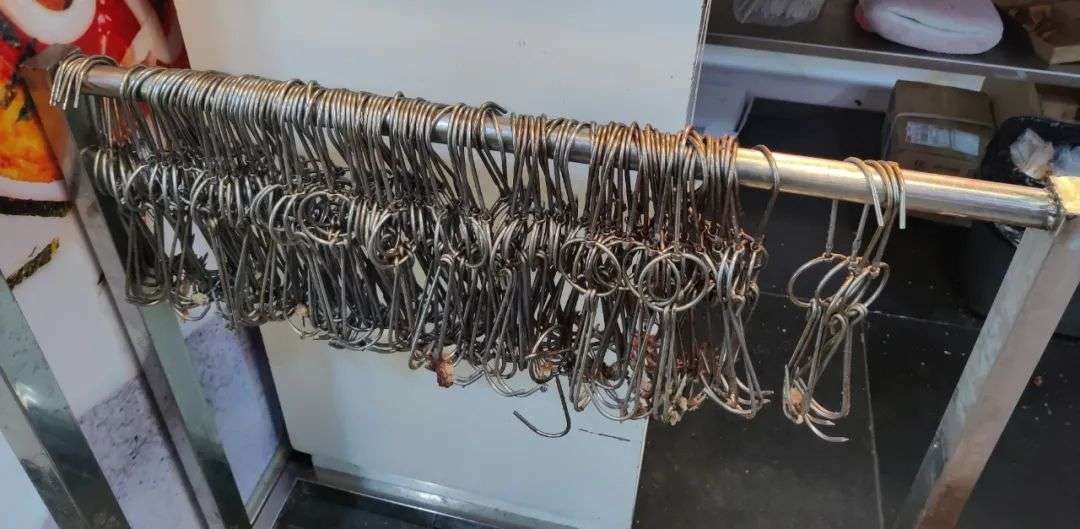 烟袋斜街的一家脆皮五花肉店主倾情介绍:他们家从八月份开始做脆皮五花肉,卖得可好了。前台旁边的小杆子上挂了很多挂钩,“这是今天卖出去的”,店主很自豪地说。拍摄时是周日晚上5点多钟,周末的“夜经济”才刚开始不久。