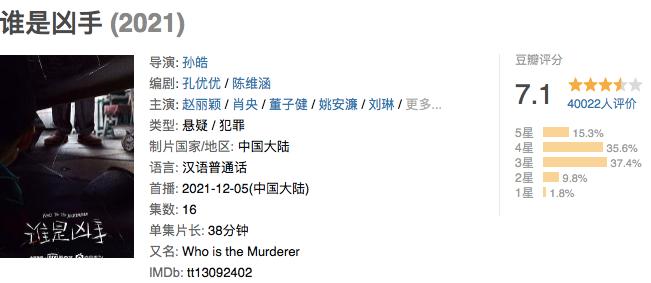 也就是说,目前在这场“上星剧”争夺赛中,爱奇艺是唯一缺失的一家。这或许与其年底重磅推出的“迷雾剧场”不无关系。在相继两部作品《八角亭谜雾》《致命愿望》扑街后,“迷雾剧场”继续卷土重来。旗下目前在播的《谁是凶手》,则兼具了这场重任,豆瓣评分7.1、全网剧集市占率破17%的开局,也算为其挽回尊严,不出意外,这可能是今年迷雾剧场表现最好的作品。