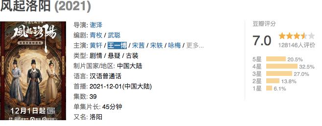 黄轩、王一博领衔主演的《风起洛阳》,则进一步加深了爱奇艺对市场的记忆。马伯庸IP加持、《长安十二时辰》制作班底,《风起洛阳》虽同样与《谁是凶手》般具有口碑争议,但均分过7的豆瓣评分还是让其在近期剧集中脱颖而出。不过,这两部剧或许不足以支撑爱奇艺“征战”年末,毕竟在一众“上星剧”面前,网播剧的传播影响力有限。
