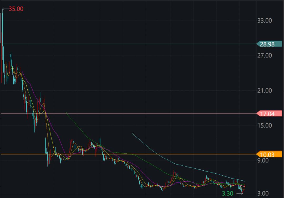 但令人没想到的是,这就是目前为止雾芯科技的最高价,自此之后,雾芯科技开始了漫漫下跌之路,12月6日,雾芯科技股价一度下跌至3.3美元最低价,较最高点跌去9成,市值仅为44亿美元,较最高时蒸发427亿美元(约合人民币2709亿元)。